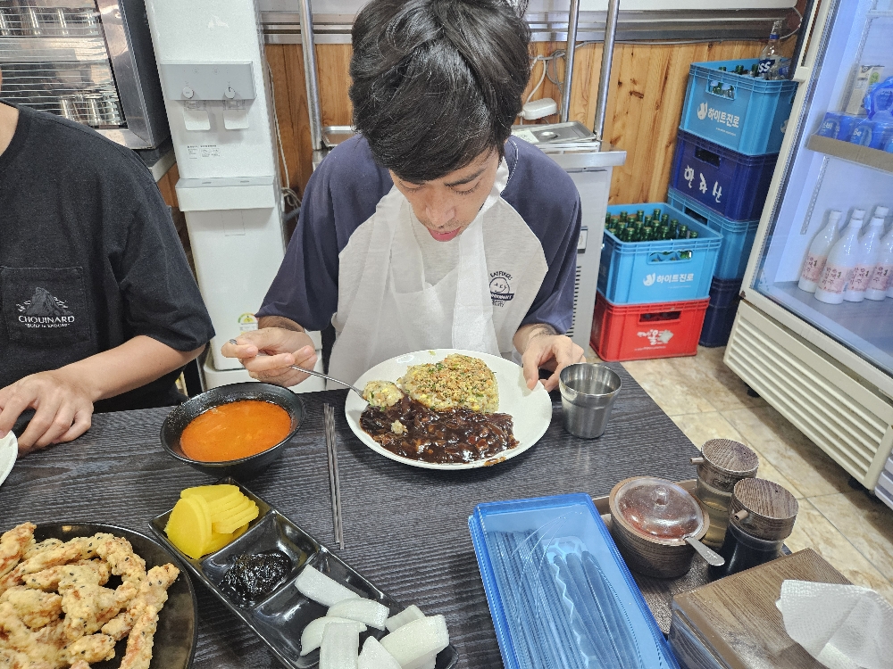 * 메가박스 삼화점에서 영화 좀비딸 관람함. 이 후 화북 신춘반점에서 볶음밥과 탕수육 주문하여 점심식사 하였음. 에이바우트커피 화북남문점에서 음료 마시고, 다이소에서 이용자들 필요한 물품 구입 후 귀원함.