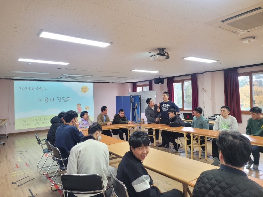 -생활하면서 느끼는 불편함, 애로사항 등 개선 했으면 하는 것에 대해 이용자-직원간 자유롭게 이야기 나누며 소통하는 시간을 가졌습니다.