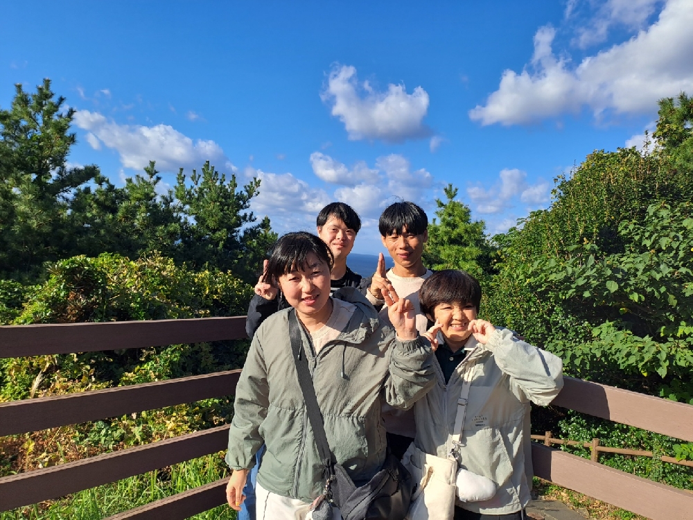 남자체험홈 이용자들과 성산일출봉 정상까지 올라갔다 풍경도 즐기며 사진도 찍고 즐거운 시간을 보냈어요^^