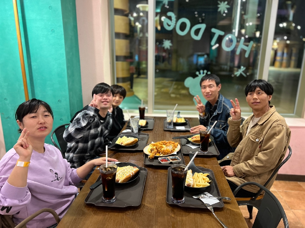 남자체험홈이용자들과 함께 신화월드에서 놀이기구도 타고 맛있는 저녁도 먹었어요^^