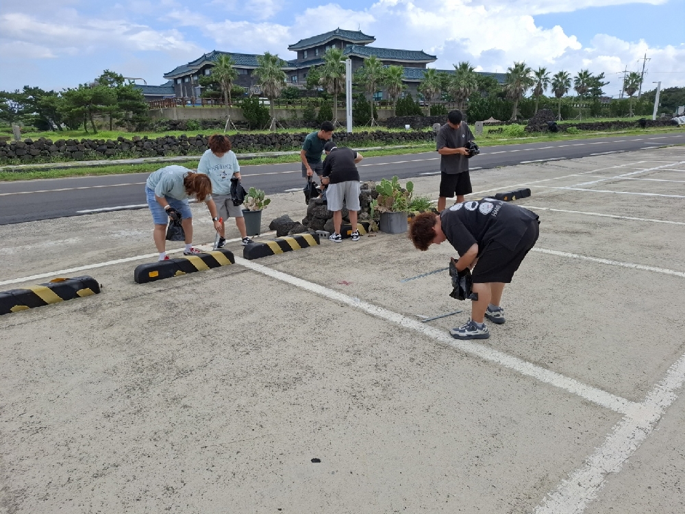 * 구좌해안도로 제주밭담테마공원 주위 및 바닷가 근처 환경정화 쓰담달리기 프로그램 진행하였음. 중식당에서 저녁식사 맛있게 먹고 편의점에서 음료수 구입하여 마신 후 문예회관 ' 숨쉬는 바닷말' 환경 뮤지컬 공연 관람하고 귀원하였음.