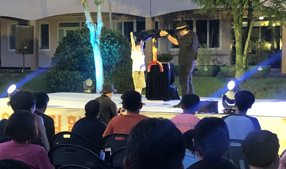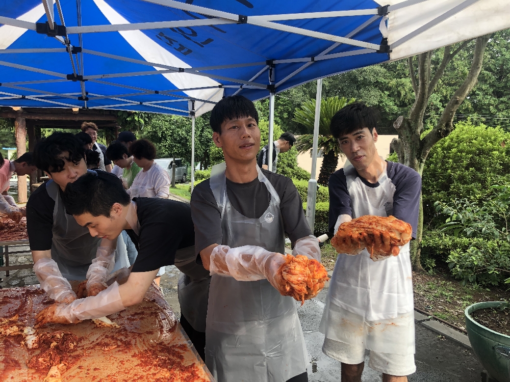 김치담그기 체험 후 직접 담근 김치와 수육 등을 먹으며 풍성한 저녁식사를 즐겼고 2부 행사로 간식 시식코너와 가수공연 및 마술공연 등이 마련되어 모두 다 함께 어우려져 뜻깊은 힐링의 시간이었습니다. |