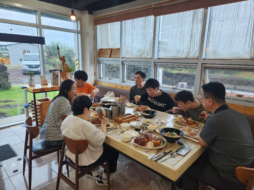 - 구좌 해안도로 도보활동 하였으며, 점심으로 하늘래레스토랑 방문하여 돈까스 주문하여 맛있게 식사 함.