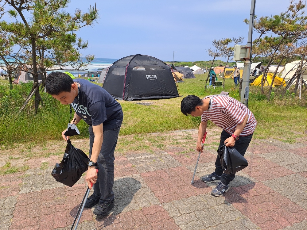 - 김녕해수욕장에서 쓰담달리기 실시하였으며 이 후 캠핑장에서 휴식 취하며 고기구워 먹음.
