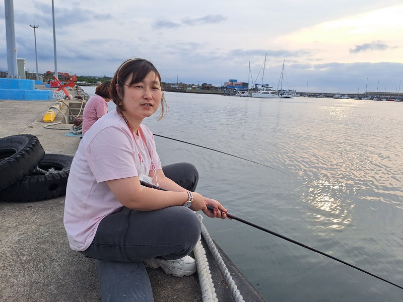 - 낚시도 하며 물고기를 잡아 뿌듯해 하며 자랑 하였습니다.